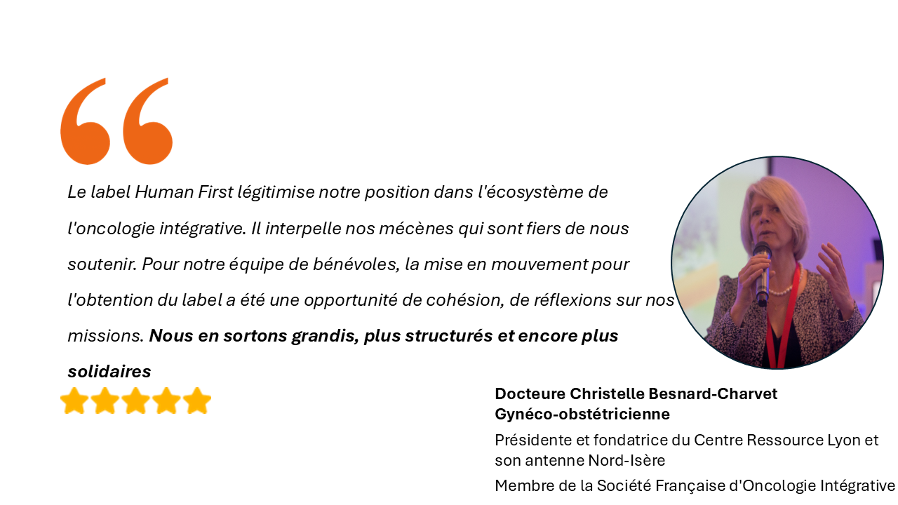 - Le label Human First est avant tout un processus qualité appliqué à la Santé Intégrative